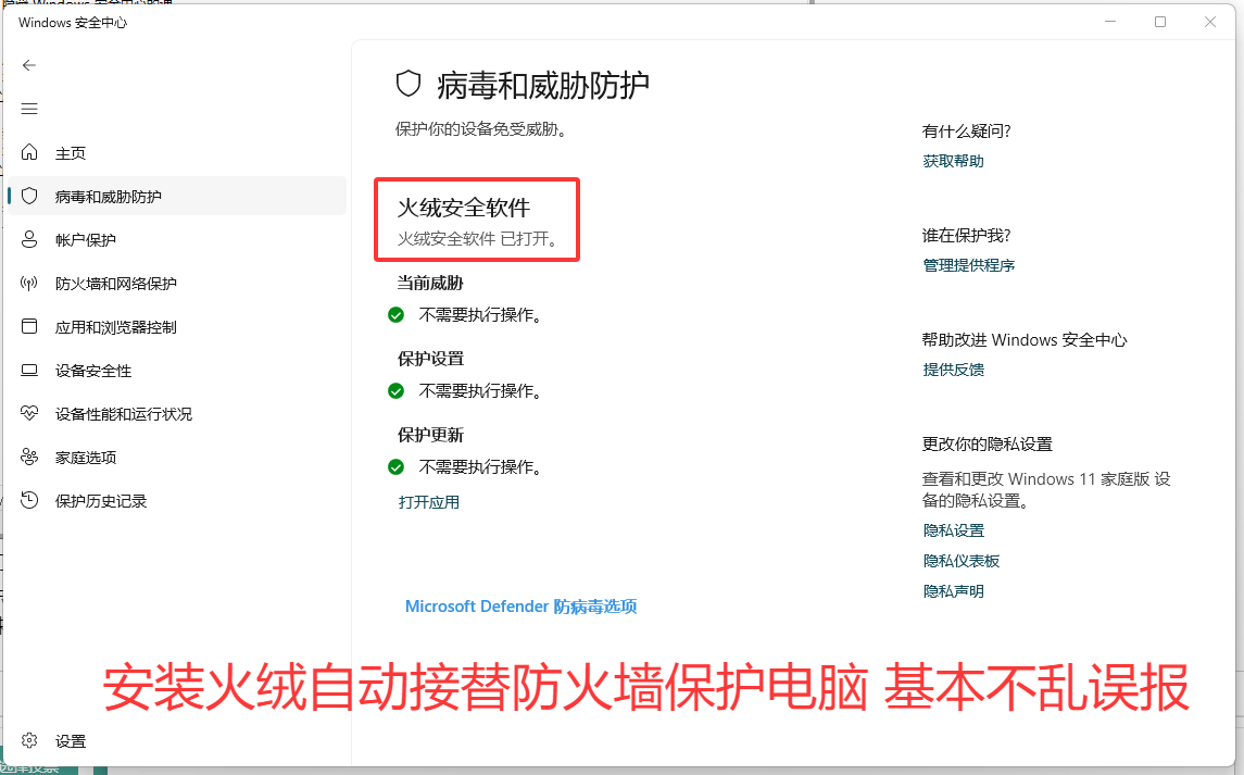 完成后建议安装火绒等轻量防护软件以替代防火墙。